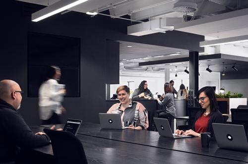 Squarespace’s 150,000-square-foot headquarters is located in Manhattan’s West Village at 8 Clarkson Street. The office fills five floors, in addition to a dedicated lobby and roof deck, within the historic Maltz Building. The space was designed with a focus on creating collaborative working spaces for employees to solve problems together creatively.